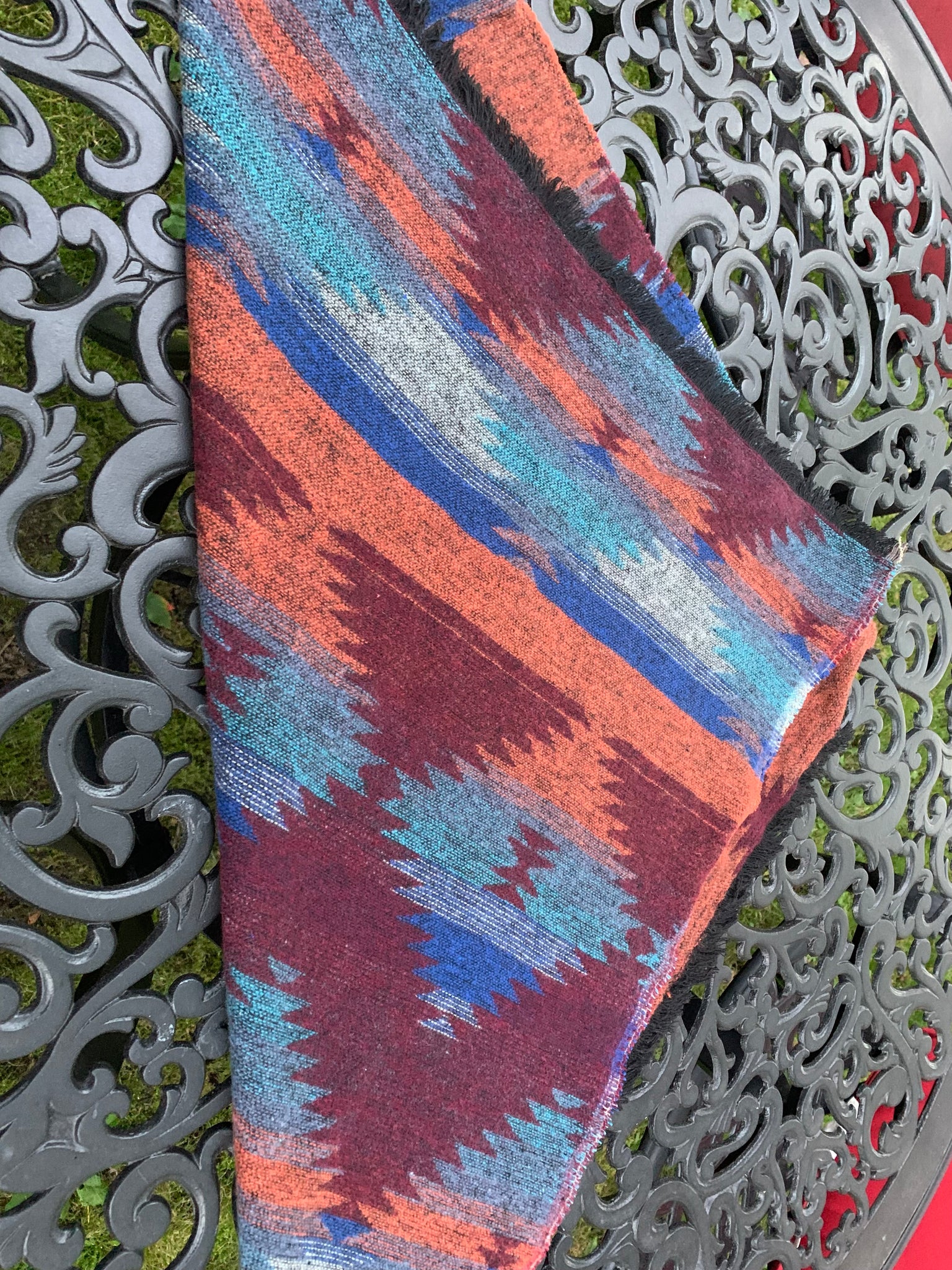 Approximately 30X30 inch square. Aztec print scarves are made locally in Maple Ridge BC.Ā