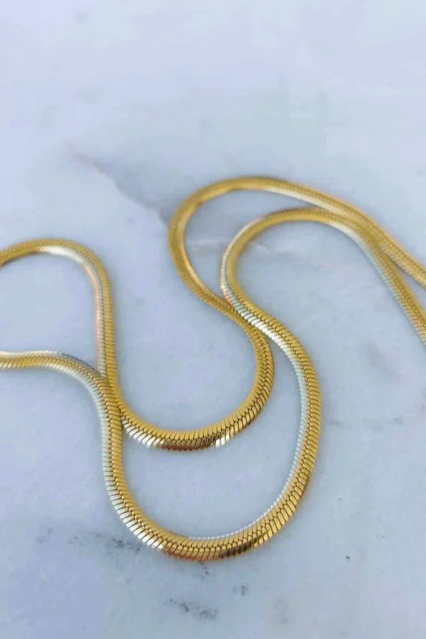 This stunning Herringbone Chain is 15" long (+2" extender) and made with hypoallergenic and tarnish resistant materials. The intricately-linked chain design lends a timeless, classic style, perfect for any occasion.